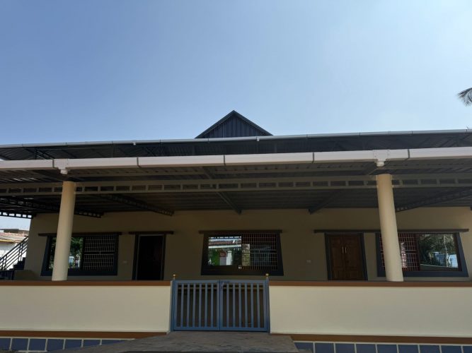 A community hall was constructed at J-Village using quality materials and standard construction practices. The main doors are teak wood, while honey wood frames were used for other doors, windows, and ventilators. Flooring was completed with 10 mm polished vitrified tiles, and walls were finished with exterior acrylic paint and interior deluxe multi-surface paint. The hall is fully equipped with electricity and a water supply. The facility provides a safe and accessible space for educational talks, community meetings, recreational programs, cultural activities, and prayers, supporting learning and social engagement for all villagers.